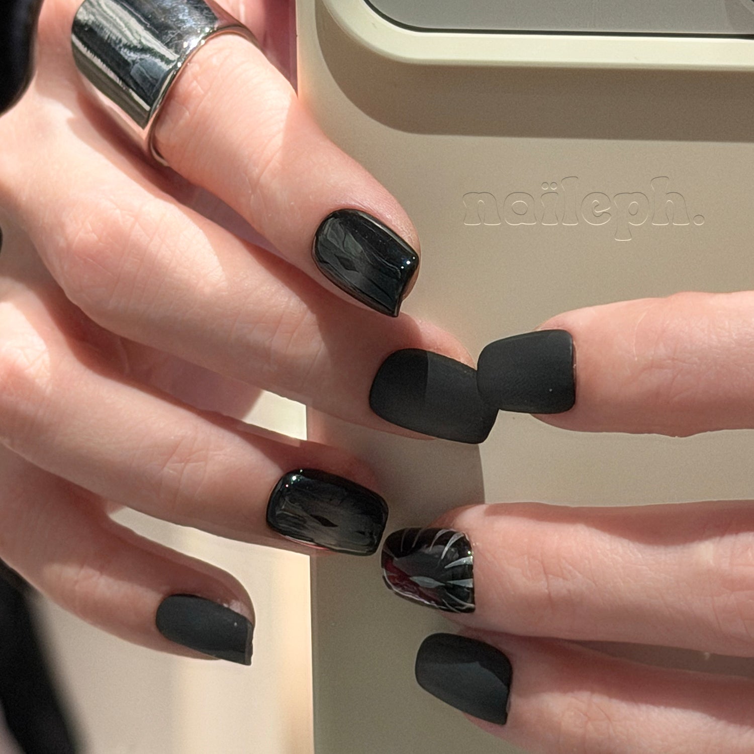 This genderless nail design is perfect for breaking boundaries in fashion — whether you identify as male, female, or non-binary, these nails make a confident statement. The matte and glossy finishes work together to add dimension and a salon-quality look, without the salon price or time.