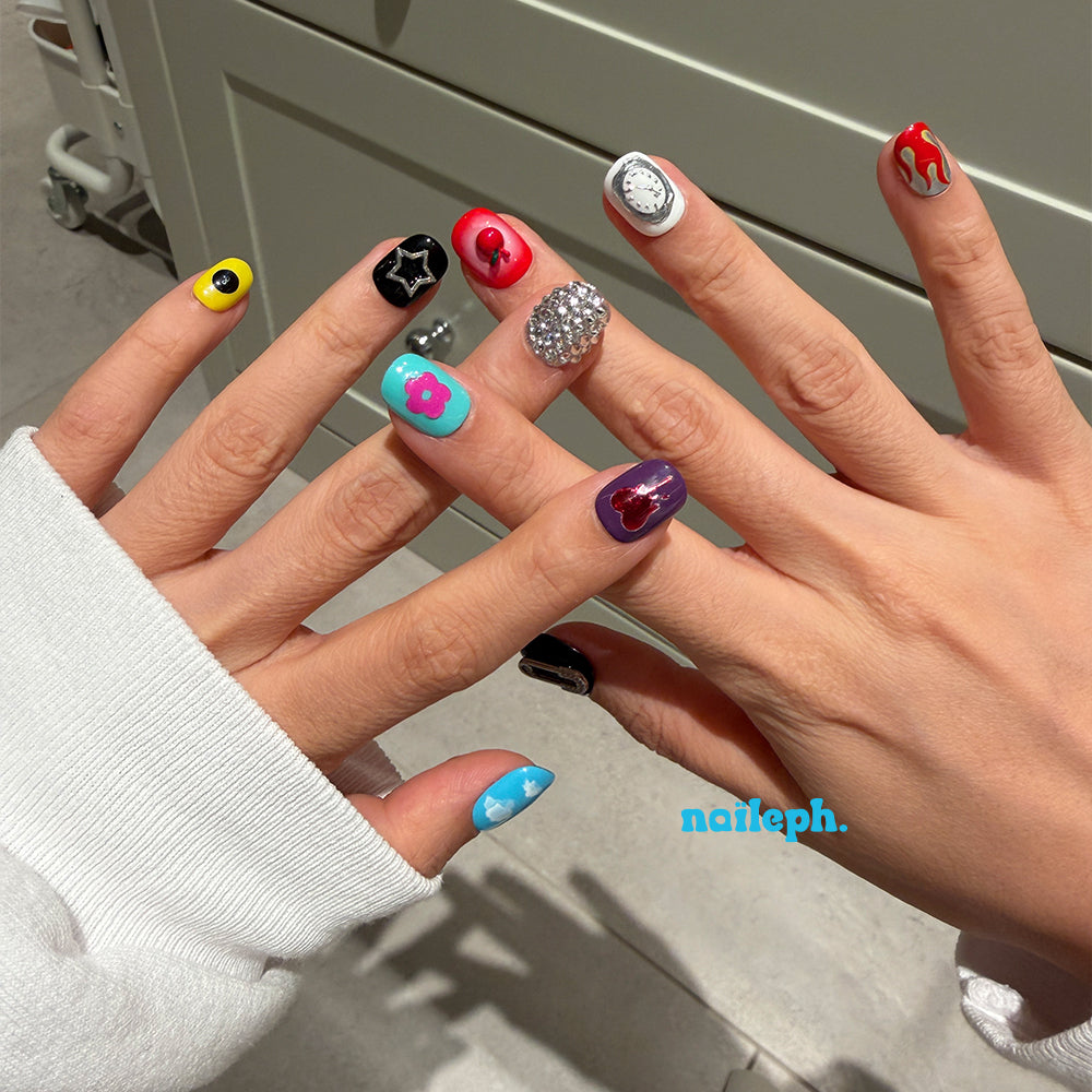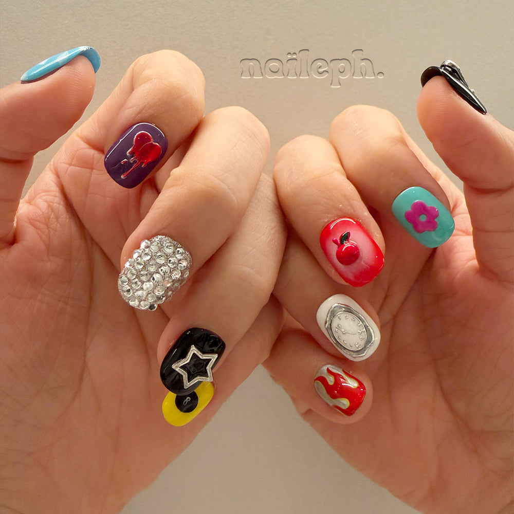 This eclectic set channels a whimsical yet edgy vibe perfect for those who want their nails to tell a colorful story of art, music, and pop culture.